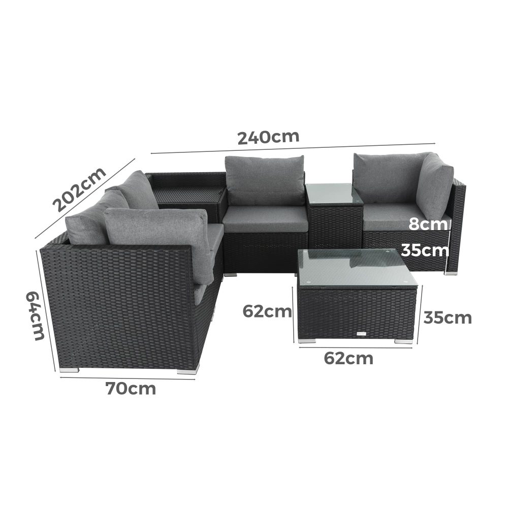 7PC Outdoor Wicker Loveseat Setting with Storage Corner (Black)