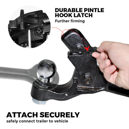 This heavy-duty pintle tow hook receiver arm is designed for reliable and secure towing of trailers for various vehicles, including cars and trucks. It is suitable for use in construction, military, off-road, and agricultural applications, providing a durable solution for demanding towing needs.