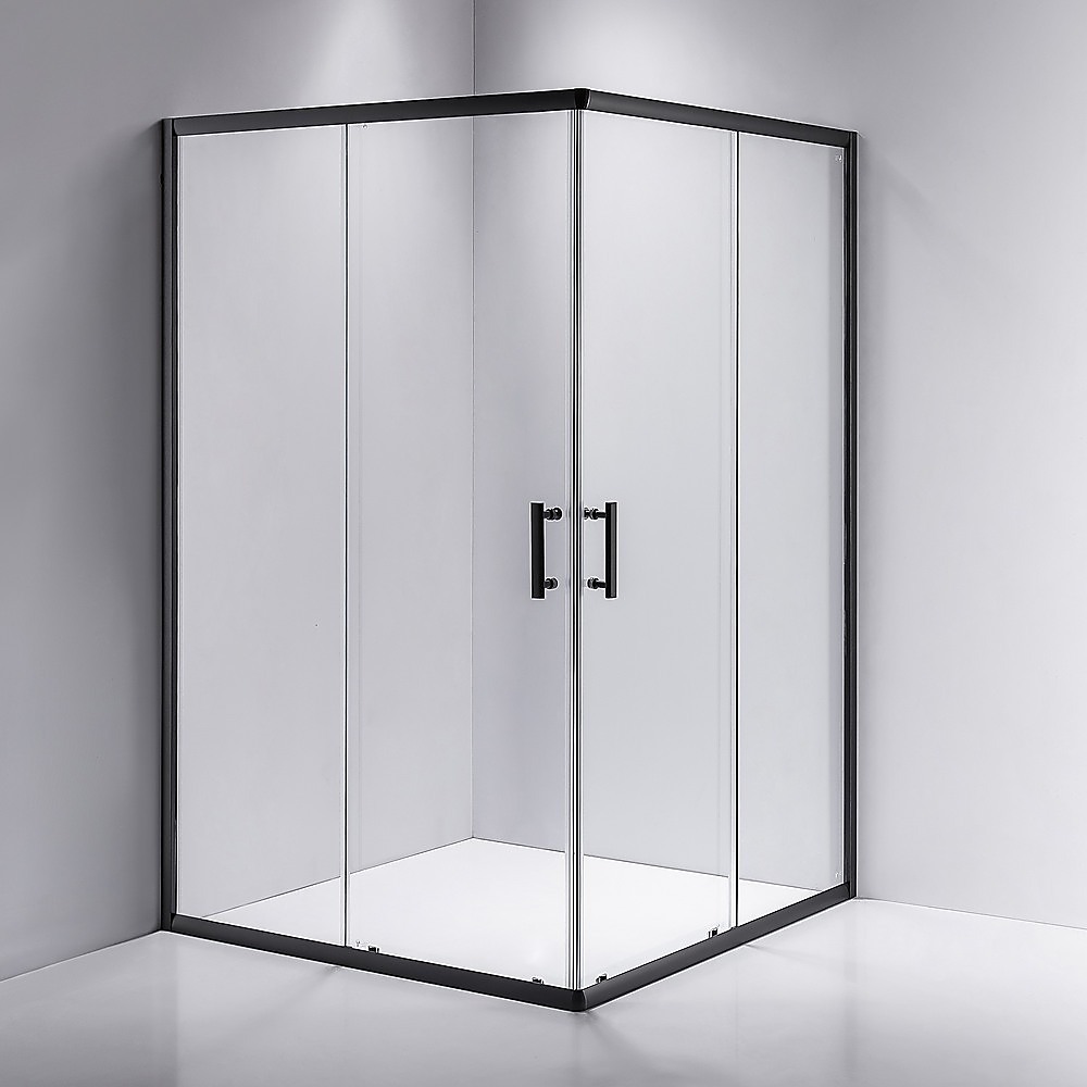 This sliding double-door shower enclosure features high-quality safety glass and a sleek design, making it a stylish and functional addition to any bathroom. The enclosure is designed for smooth operation with a multi-wheel system and includes a quick-release door for easy cleaning and maintenance.