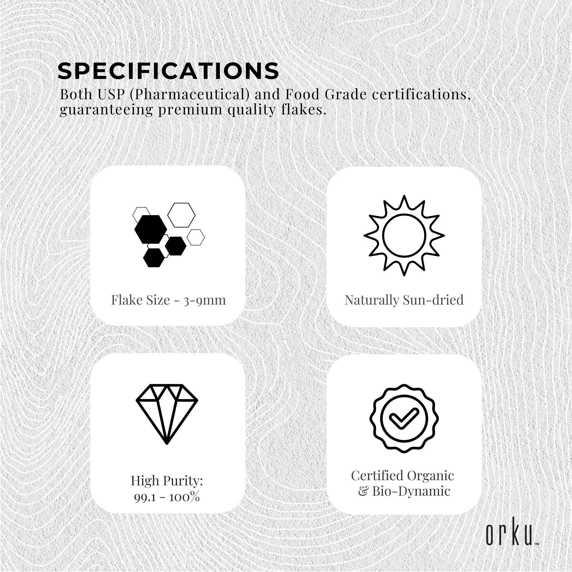 - Pure magnesium chloride flakes sourced from natural saltwater
