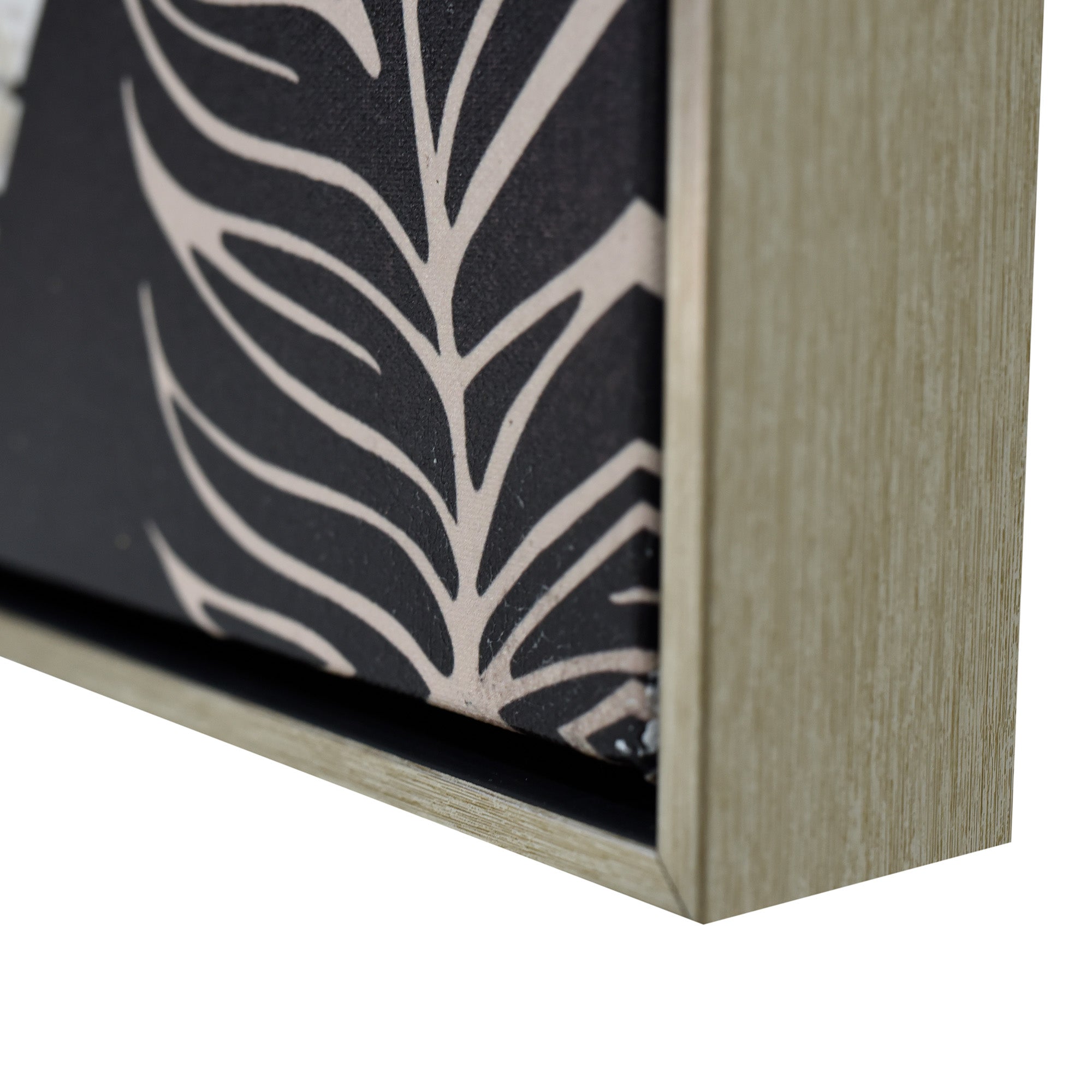 The artwork is stretched and gallery wrapped around a wooden stretcher, finished with a floating frame that creates a visual gap, enhancing the three-dimensional effect and making the canvas stand out.