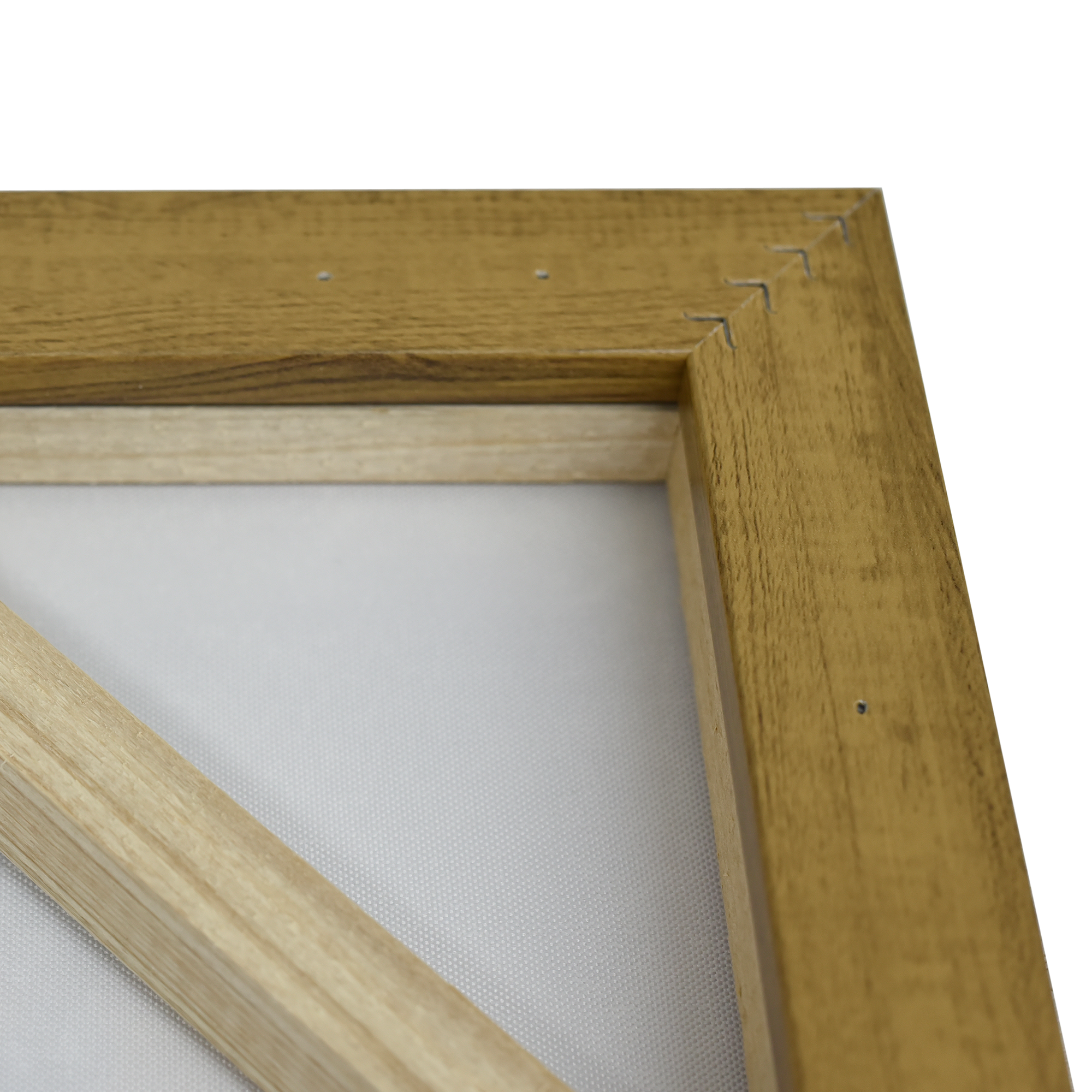 The artwork is stretched and gallery wrapped around a wooden stretcher with a floating frame, creating a visual depth that enhances its aesthetic appeal.