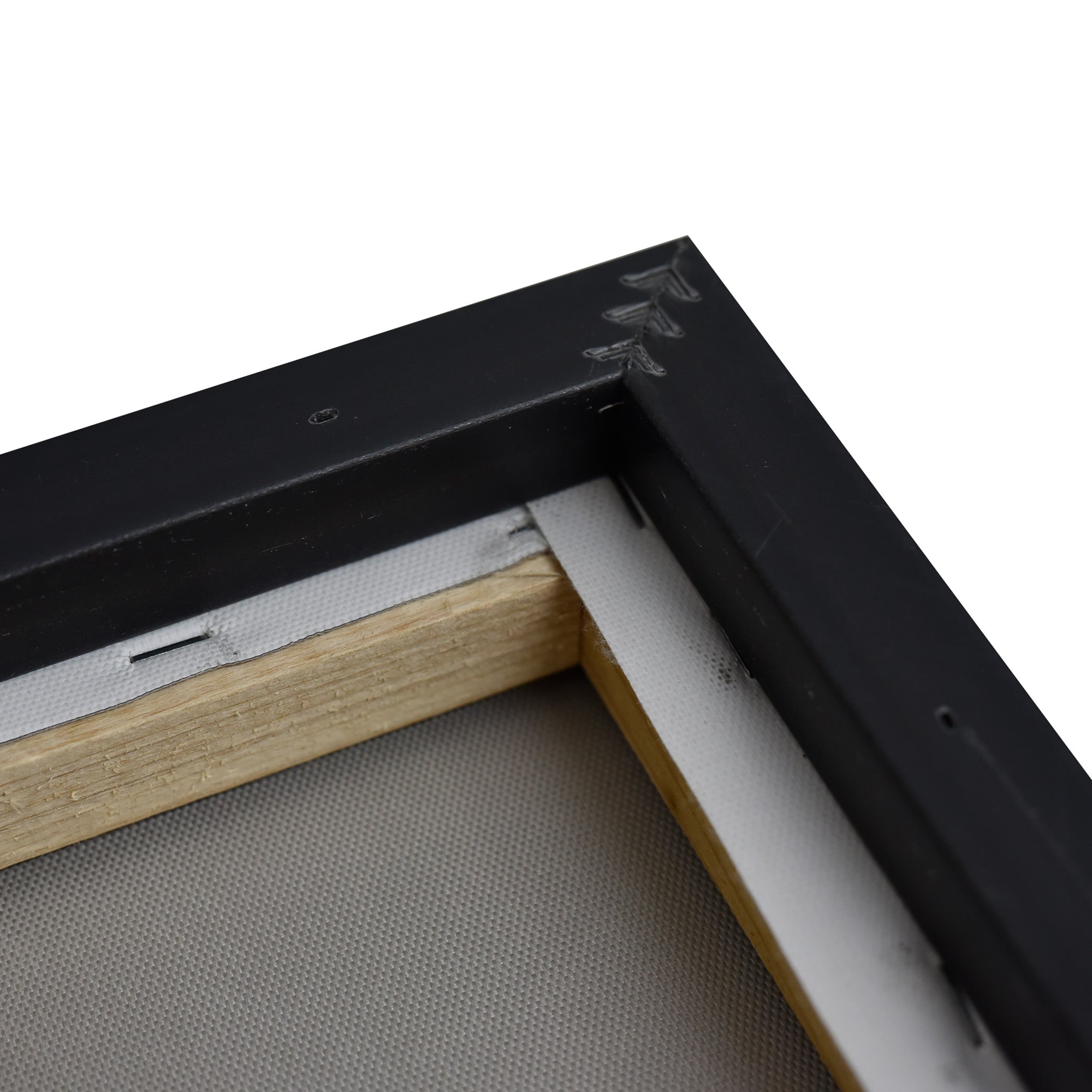 The artwork is stretched and gallery wrapped around a wooden stretcher, finished with a floating frame that creates a gap between the print and the frame, enhancing the visual depth and making the canvas stand out.