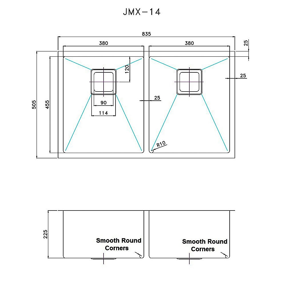 - Made from 1.5mm-thick Type 304 stainless steel with a satin finish for durability and a sleek appearance