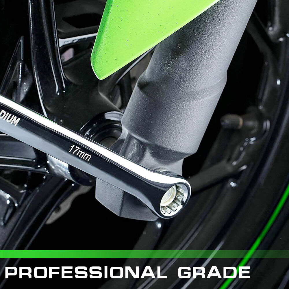 This 8-piece aviation spanner set features extra long wrenches designed for enhanced leverage and torque, making it suitable for hard-to-reach areas. Crafted from high-quality chrome vanadium steel, these tools are heat treated for maximum strength and durability. The set includes a variety of metric sizes, each with a full polish chrome finish for rust prevention and easy cleaning. The tools are designed with a 12-point head for a stronger grip on bolts and a slender shaft with a thick ring head for added leverage.