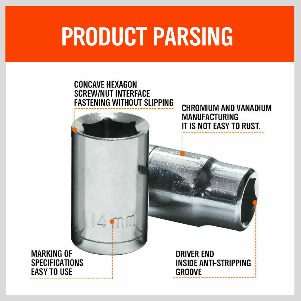 • 8 sockets in sizes 11mm, 12mm, 13mm, 14mm, 15mm, 16mm, 17mm, and 19mm