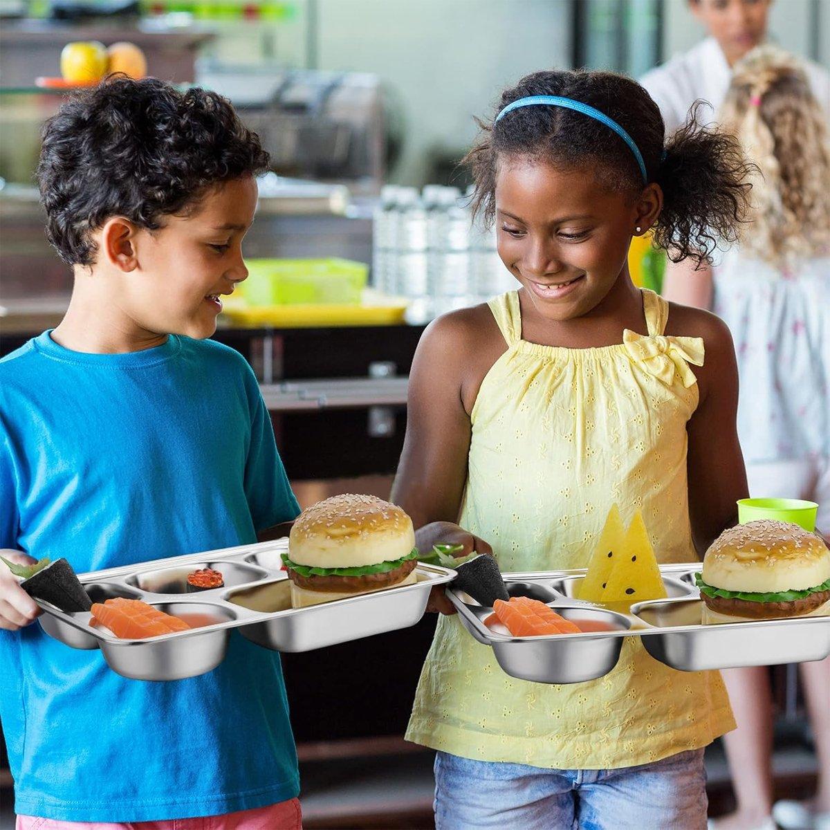 8pcs Stainless Steel Divided Dinner Plates Square Fast Food Plate for Students