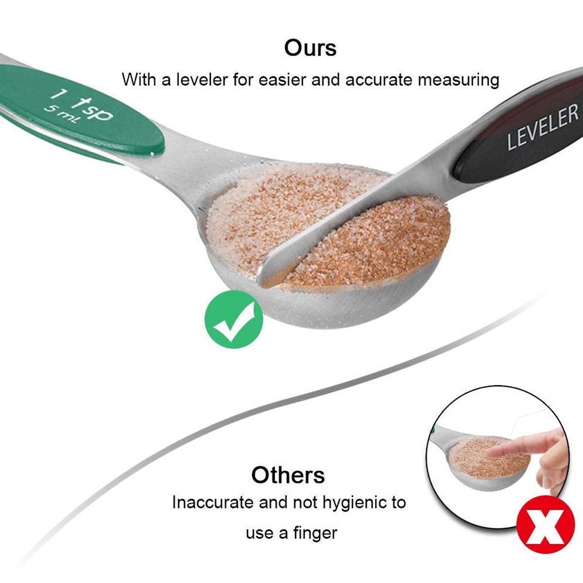This 8-piece stainless steel measuring spoon set is a versatile and practical tool for any kitchen. Featuring a dual-head design, these spoons allow for easy measurement of both dry and liquid ingredients. The magnetic suction handle enables secure stacking and space-saving storage, making organization simple. Crafted from high-quality, food-grade stainless steel, these spoons are durable, rust-resistant, and easy to clean. Precise engraved scale markings and an included scraper ensure accurate measurements for baking, cooking, and recipe preparation.
