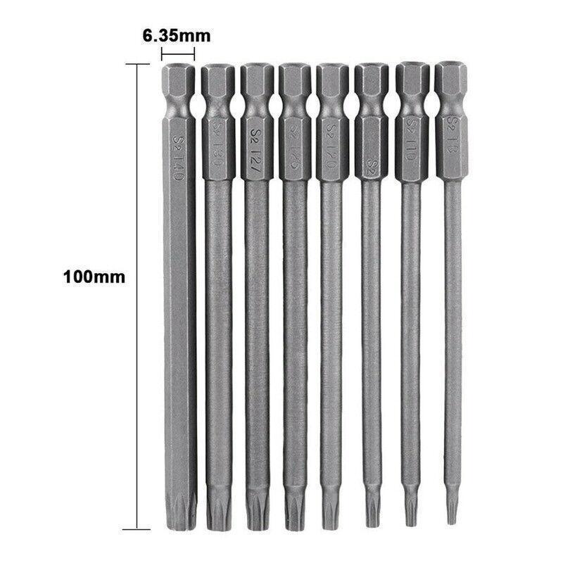 8PCS T8 to T40 Torx Screwdriver Bit Set 100mm S2 Steel Hex Tip Head