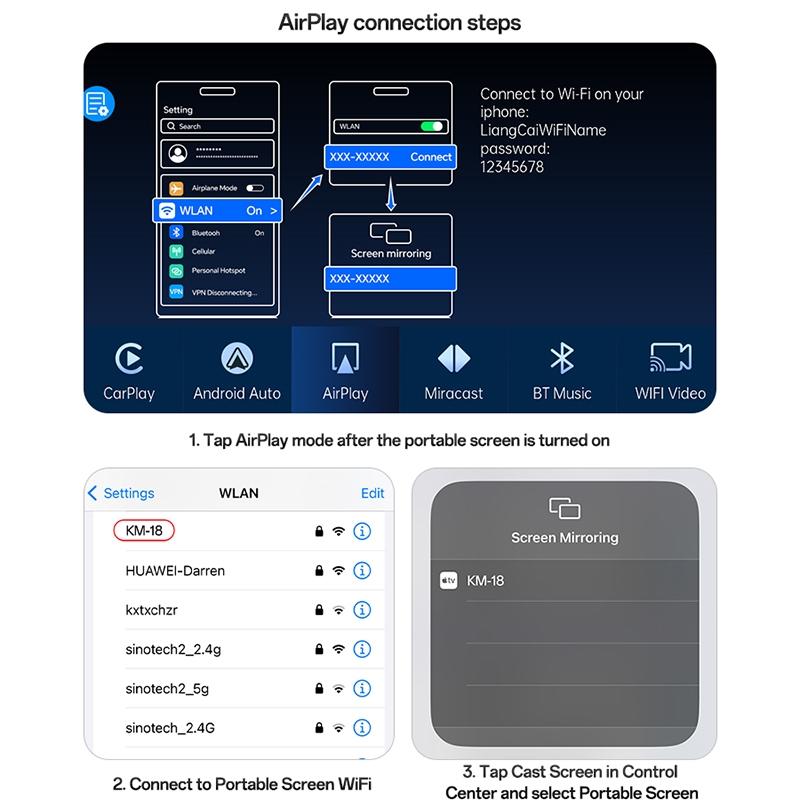 - Supports CarPlay, Android Auto, AirPlay, Wi-Fi, Bluetooth 5.2, FM, and AUX functions