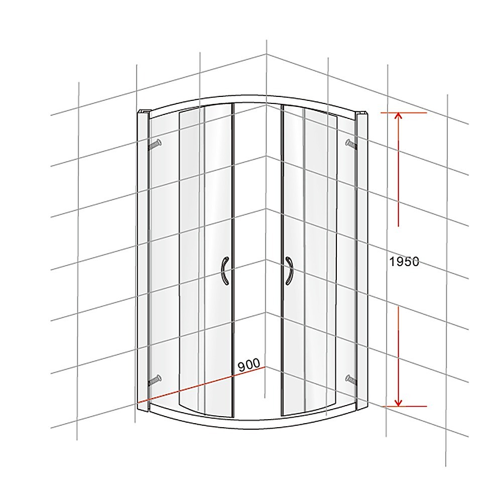 90 x 90cm Chrome Rounded Sliding 6mm Curved Shower Screen with Black Base