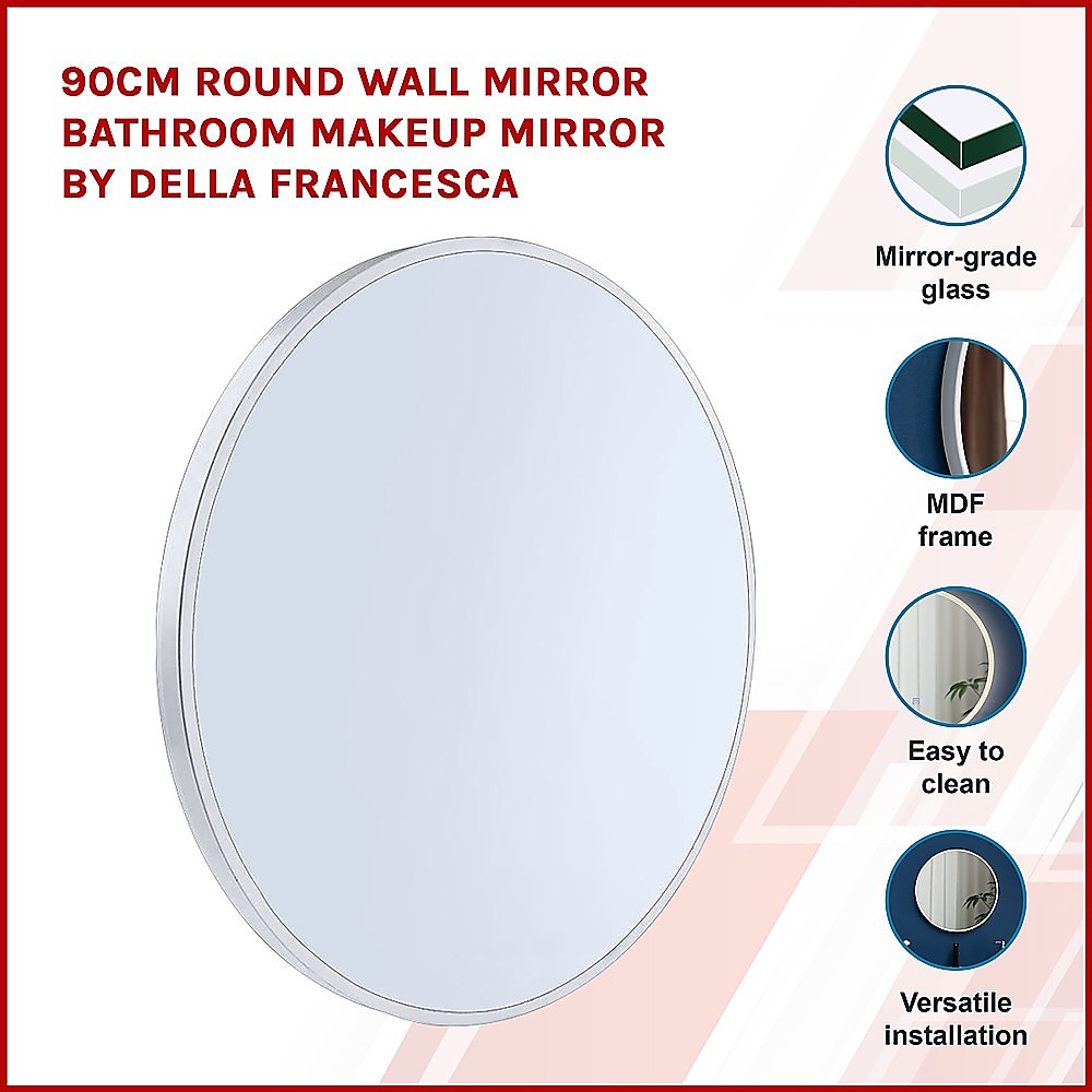 90cm Round Wall Mirror Bathroom Makeup Mirror by Della Francesca