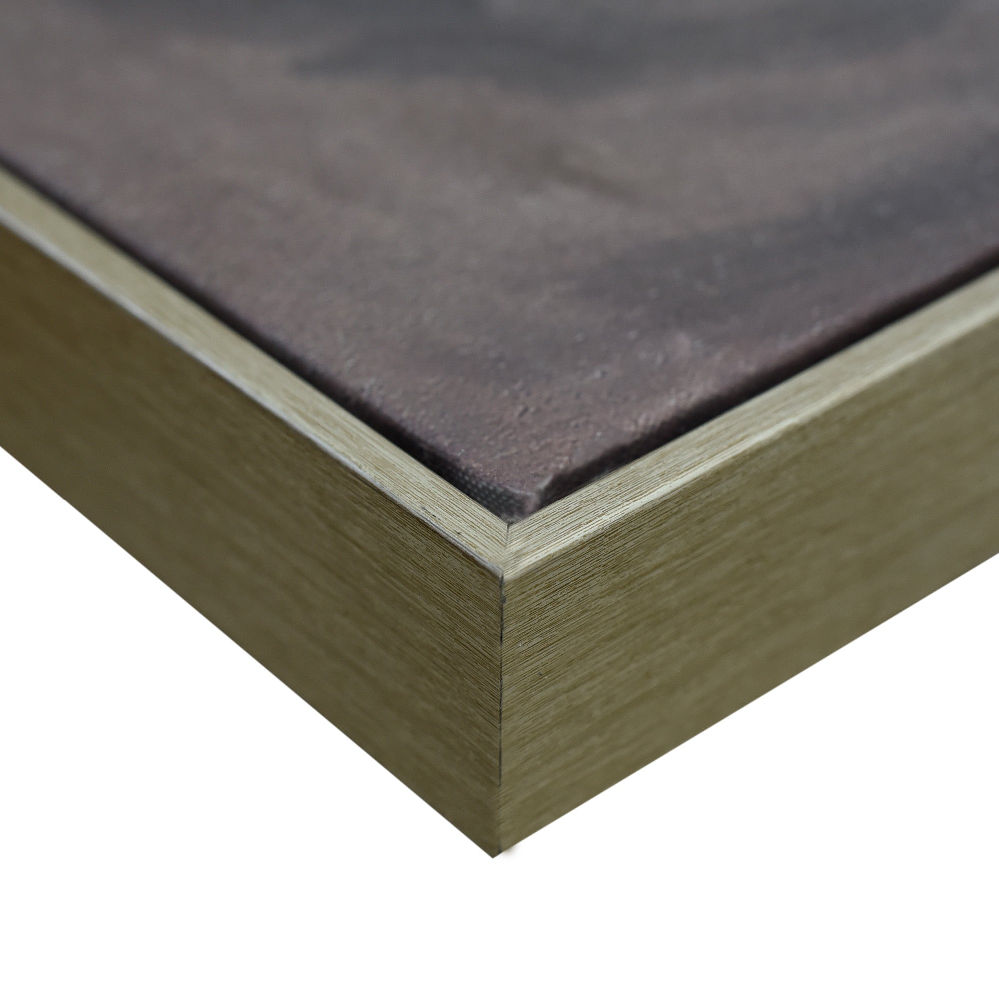 The artwork is stretched and gallery wrapped around a wooden stretcher, finished with a floating frame that creates a gap between the print and the frame, enhancing the visual depth and making the canvas stand out.