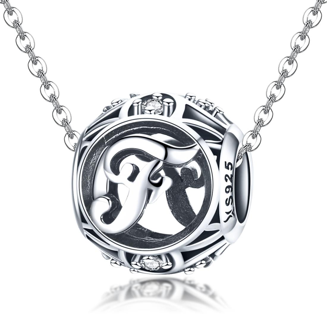 925 Sterling Silver 26 English Letter Beads For Diy Bracelets & Necklaces Style – F