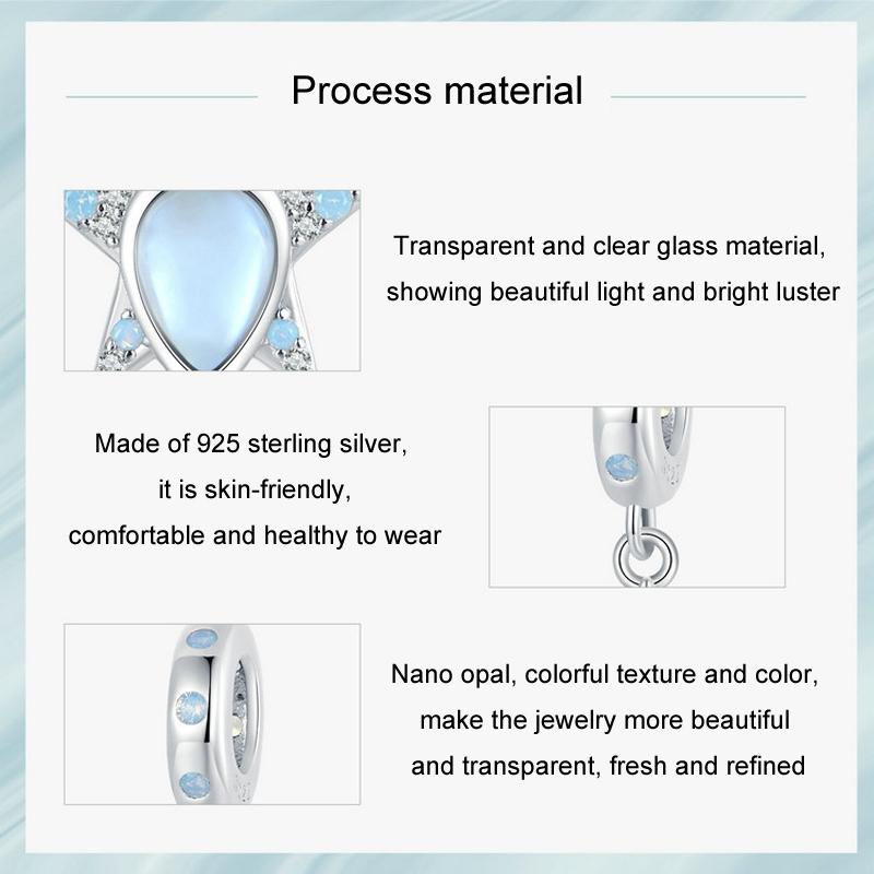 This beaded bracelet is crafted from high-quality 925 sterling silver, offering a skin-friendly and comfortable wearing experience. The transparent glass material features a beautiful light and bright luster, complemented by nano opal accents that add colorful texture and enhance the jewelry’s transparency. Its unique and refined design makes it a stylish accessory that is lightweight and easy to wear.