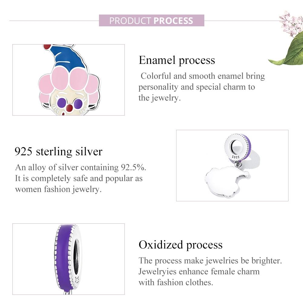 The package contains one 925 sterling silver clown pendant suitable for DIY bracelets and necklaces.
