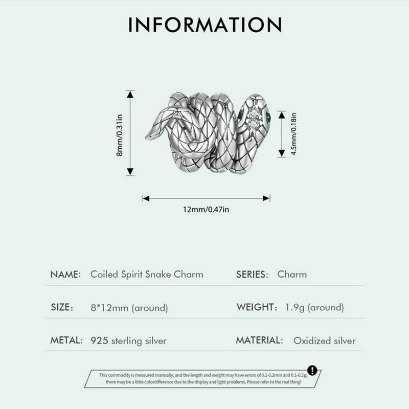 This coiled snake pendant is crafted from high-quality 925 silver, making it suitable for DIY bracelet projects. Its simple and elegant design enhances your fashion style, while the oxidation and stone setting techniques ensure durability and a long-lasting appearance. The pendant is lightweight, providing comfortable wear for extended periods.
