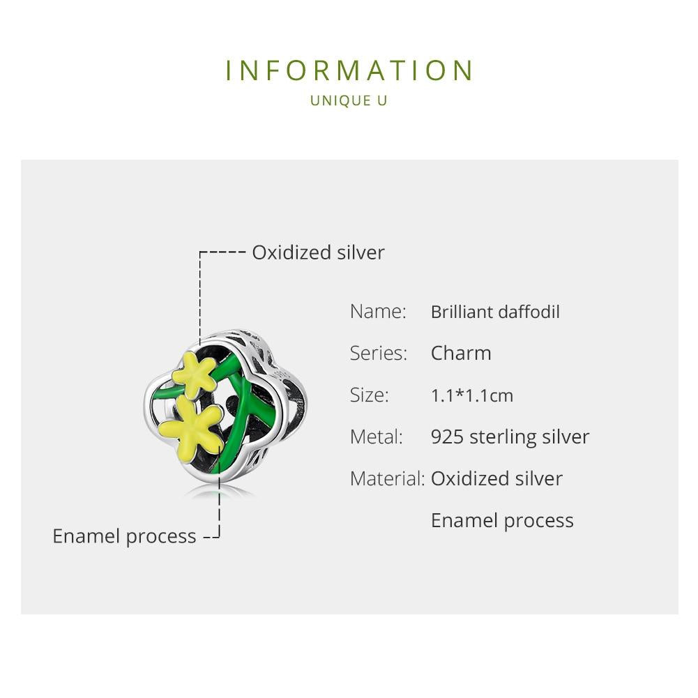 This product features delicate daffodil beads crafted from high-quality 925 sterling silver, designed for DIY jewelry projects. The beads have a unique drop oil finish, offering a stylish and elegant appearance. They are ideal for creating personalized bracelets, necklaces, and anklets, making them perfect for custom gift ideas. The beads are lightweight and easy to handle, suitable for various jewelry designs.