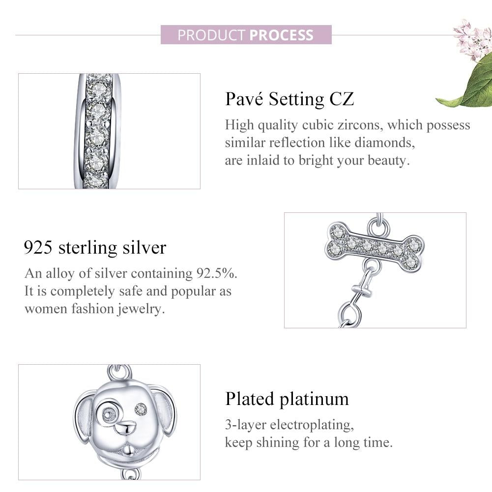 Package includes one 925 sterling silver dog beaded safety chain bracelet.