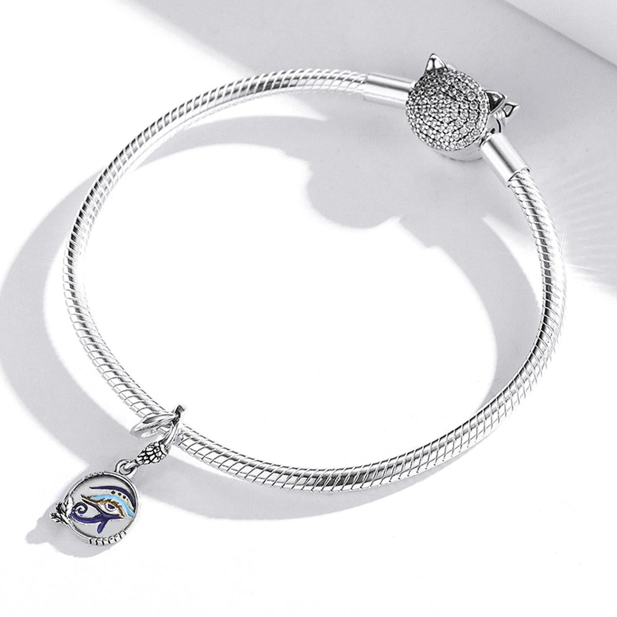 This pendant features a unique Egyptian twin eyes design crafted from high-quality 925 silver with a drop oil finish. It is suitable for creating various jewelry pieces such as bracelets, necklaces, and anklets, allowing for personalized and distinctive accessories or gifts. The pendant is easy to care for by avoiding contact with chemicals and wiping with a soft cloth to maintain its shine.