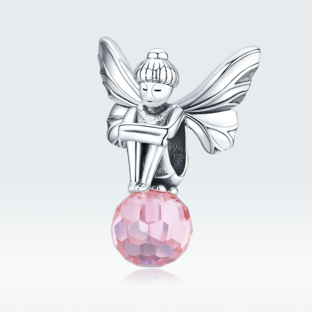 925 Sterling Silver Flower Fairy Beaded Pink Glass Zircon Bracelet Accessories