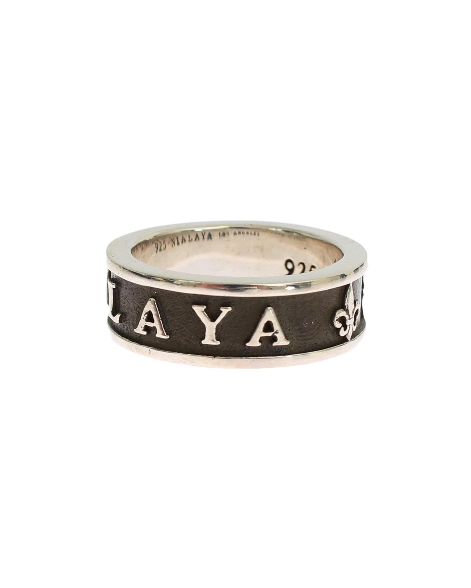 This men’s ring is crafted from high-quality 925 sterling silver, featuring a sleek design with a prominent logo detail. It combines a modern aesthetic with durable craftsmanship, making it suitable for everyday wear or special occasions.