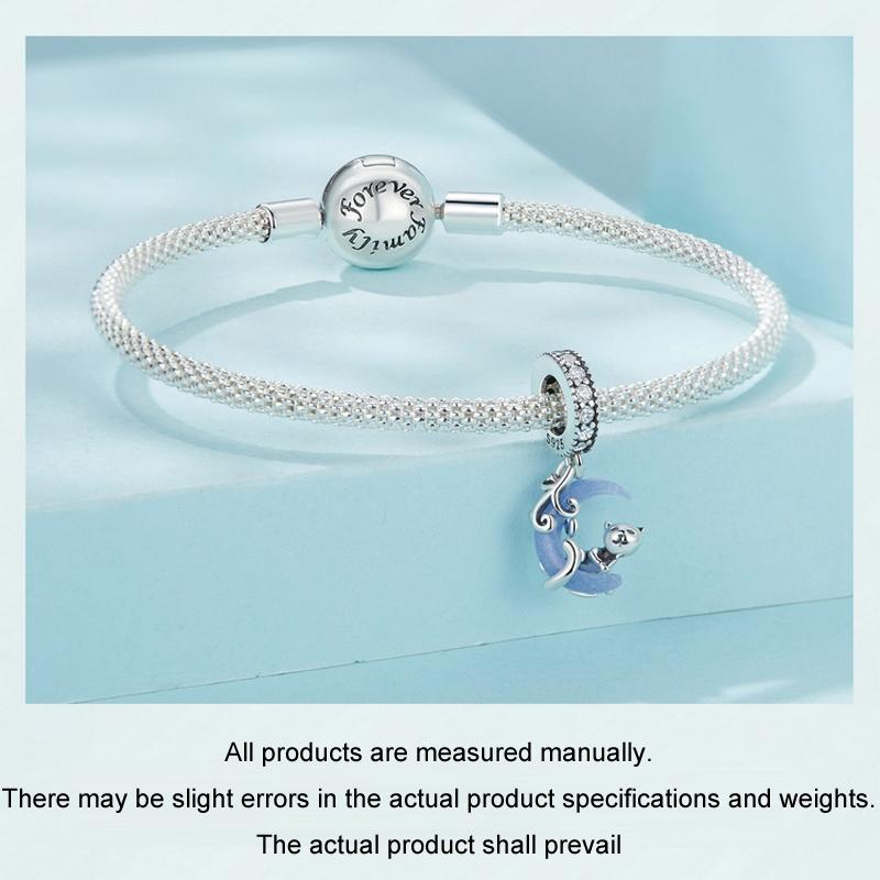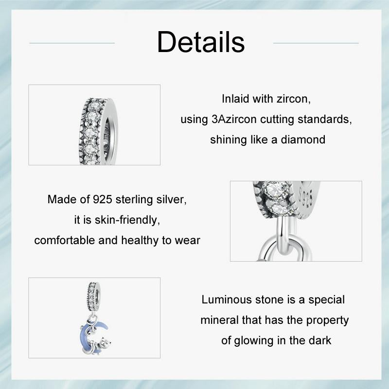 This pendant features a luminous moon cat design crafted from high-quality sterling silver. It is adorned with sparkling zircon stones, creating an eye-catching appearance. The compact size and unique design make it a charming accessory suitable for various styles.