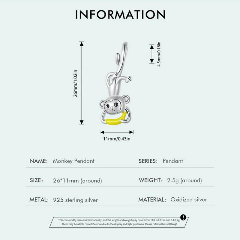 This sterling silver monkey pendant is designed for DIY bracelets, offering a stylish and lightweight accessory. Crafted from high-quality silver, it provides a comfortable and skin-friendly wearing experience. Its simple yet elegant design makes it suitable for various fashion styles.