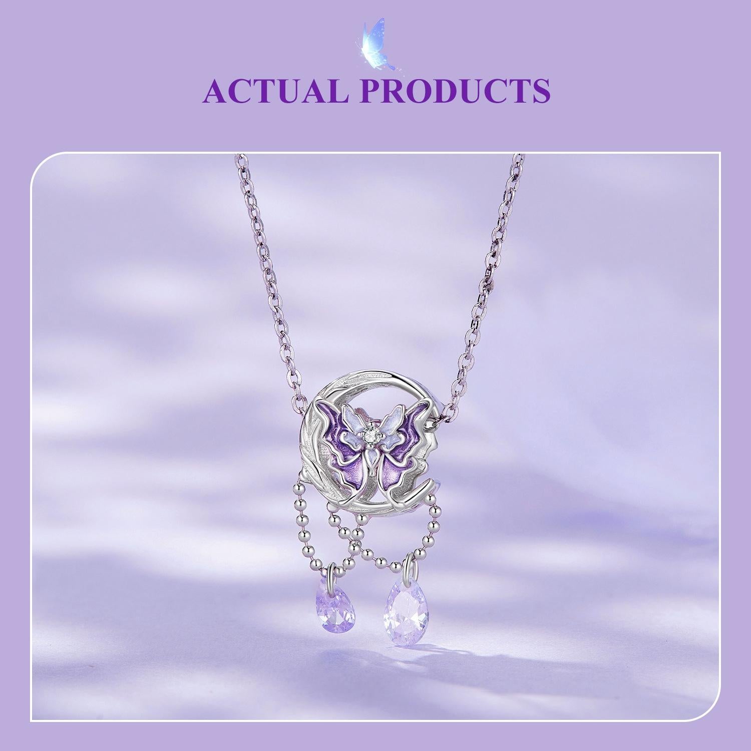 Package includes one 925 sterling silver moon butterfly pendant necklace.