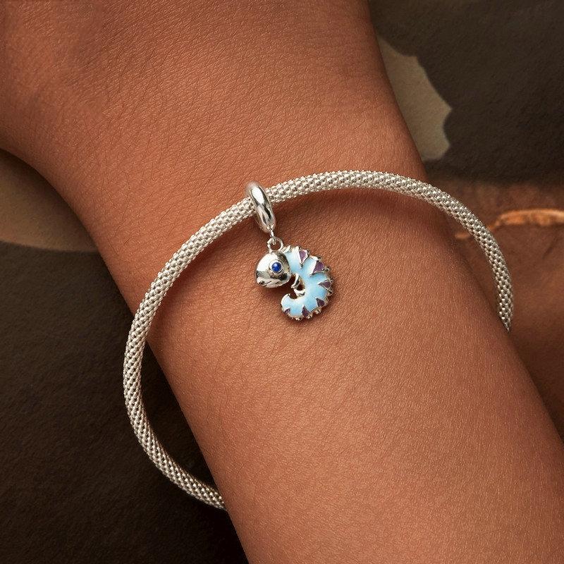 This chameleon pendant is crafted from high-quality 925 sterling silver and features a platinum plating for durability and a luxurious appearance. The design incorporates oil dripping technology, which adds an elegant and transparent color effect. The pendant is made with clean, high-transparency crystal material, resulting in a bright and vibrant look. Its unique design and refined appearance make it a distinctive accessory suitable for various styles.
