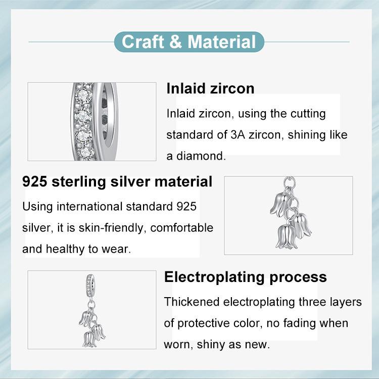 This bracelet features a delicate lily of the valley pendant crafted from high-quality materials, offering a sparkling and elegant appearance. It combines fine craftsmanship with durable plating, making it suitable for daily wear and special occasions.