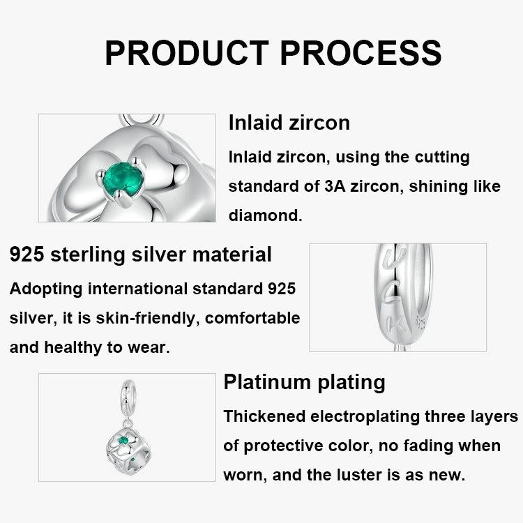 This lucky clover dice bracelet is crafted from high-quality materials, featuring a silver base with platinum plating for a luxurious appearance. It is designed to be comfortable and skin-friendly, suitable for everyday wear. The bracelet is enhanced with sparkling zircon stones, providing a diamond-like shine and an elegant look. Its durable plating ensures long-lasting color and luster, making it a stylish accessory for various occasions.