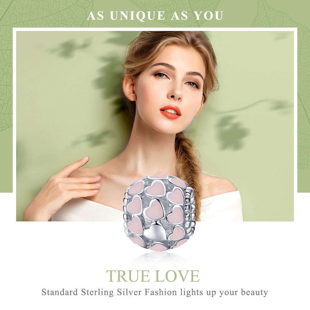 Package includes a single pink heart-shaped diamond bead made of 925 sterling silver.