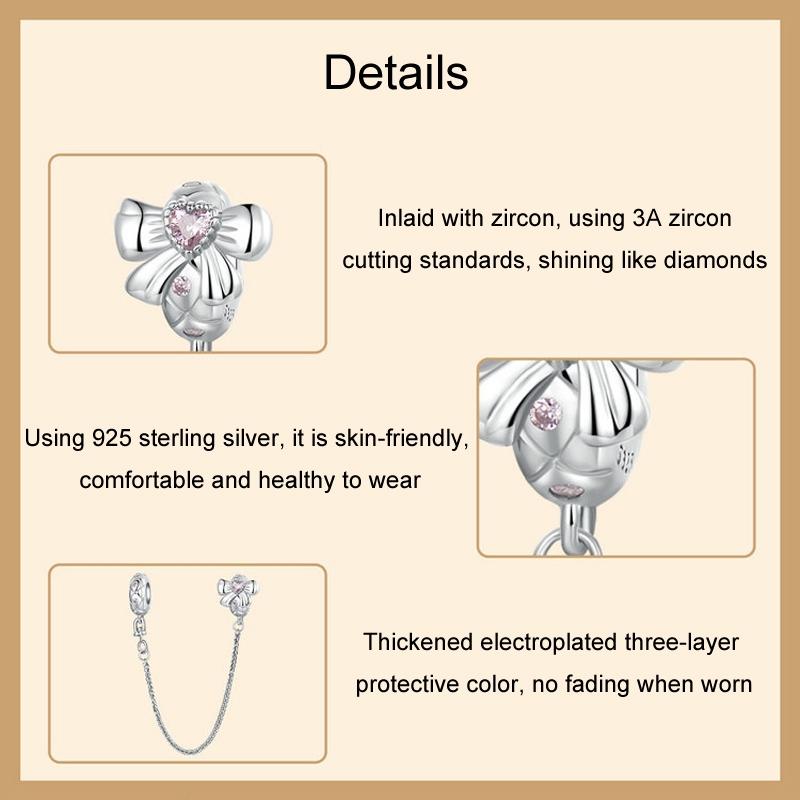 Package includes one 925 sterling silver romantic bow safety chain suitable for DIY beaded accessories.
