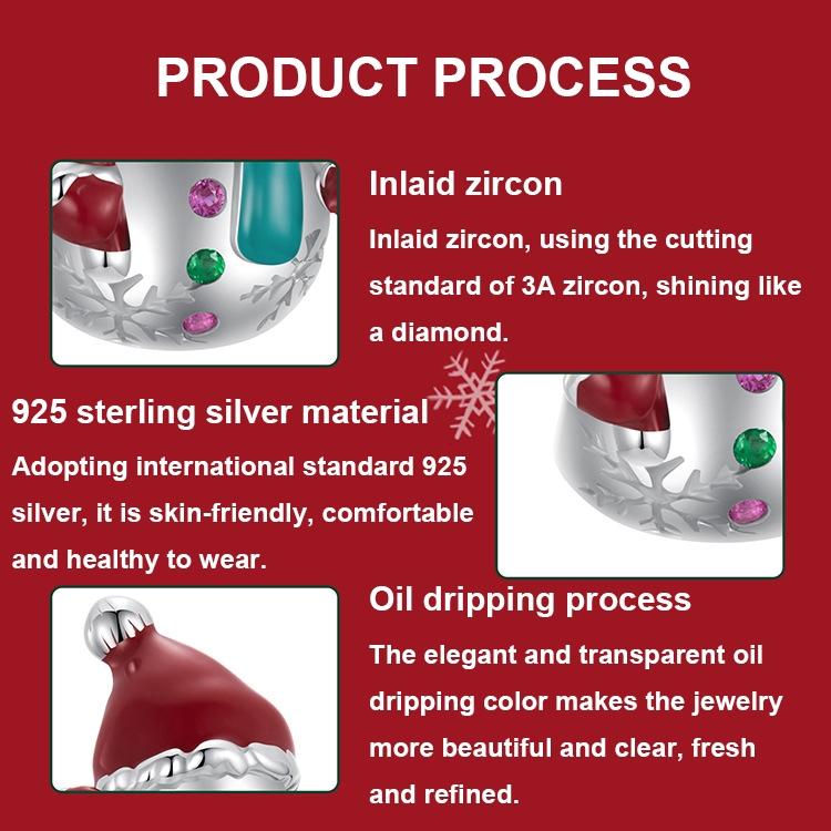 This snowman bracelet bead is crafted from high-quality 925 sterling silver and features a sparkling inlay of 3A zircon cut to diamond standards. Its elegant design is enhanced with a transparent oil-drop color, adding beauty and clarity. The bead is finished with a luxurious gold-plated technique, making it a stylish addition to any jewelry collection. It is lightweight and comfortable to wear, suitable for various bracelet styles.