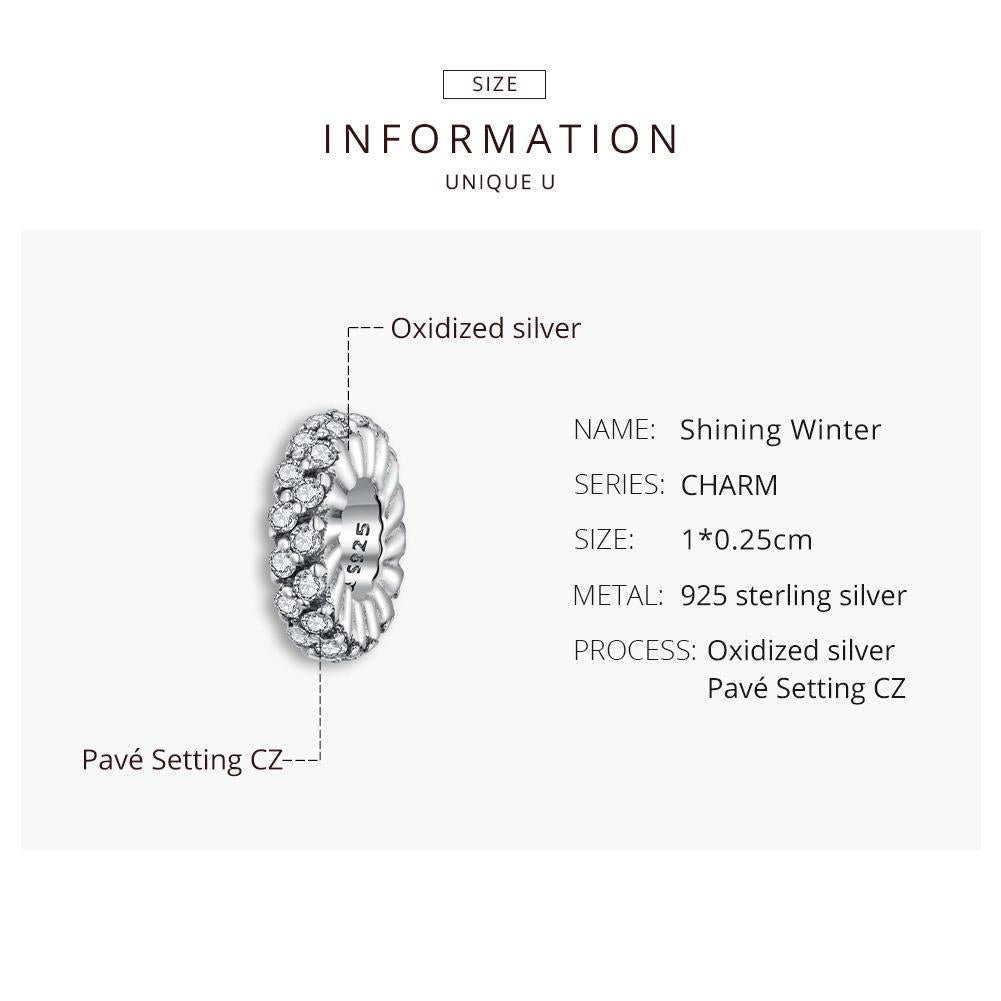 - 1 x 925 Sterling Silver Sparkling Winter Zircon Beads for DIY Bracelets and Necklaces