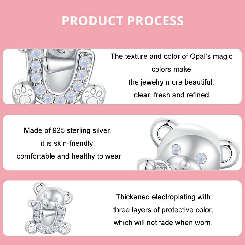 This product features a charming bear design crafted from high-quality 925 sterling silver, making it suitable for daily wear. It is designed to be skin-friendly, comfortable, and durable, with a thickened electroplating process that provides three layers of protective color to prevent fading. The bead is lightweight and versatile, fitting most bracelets and necklaces.