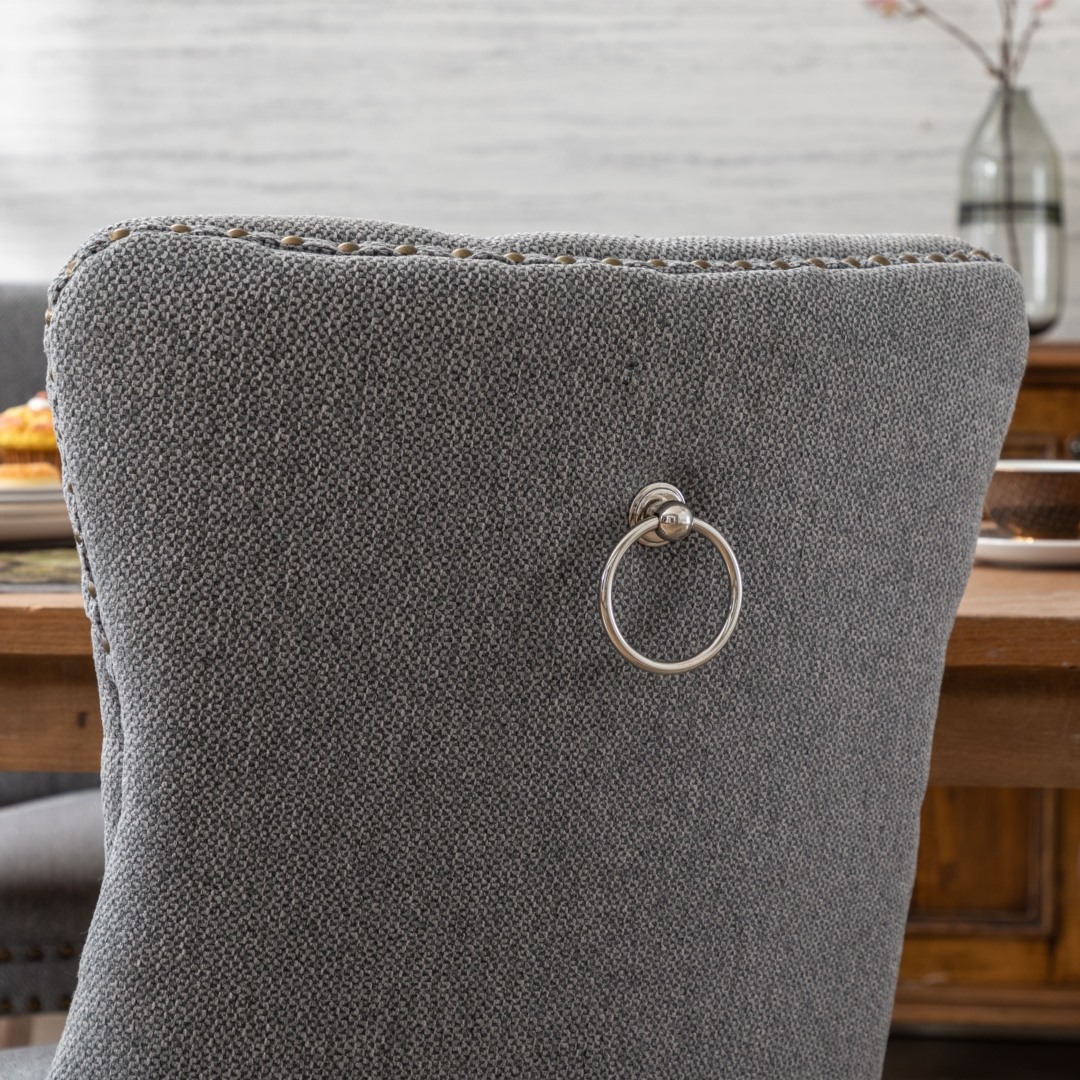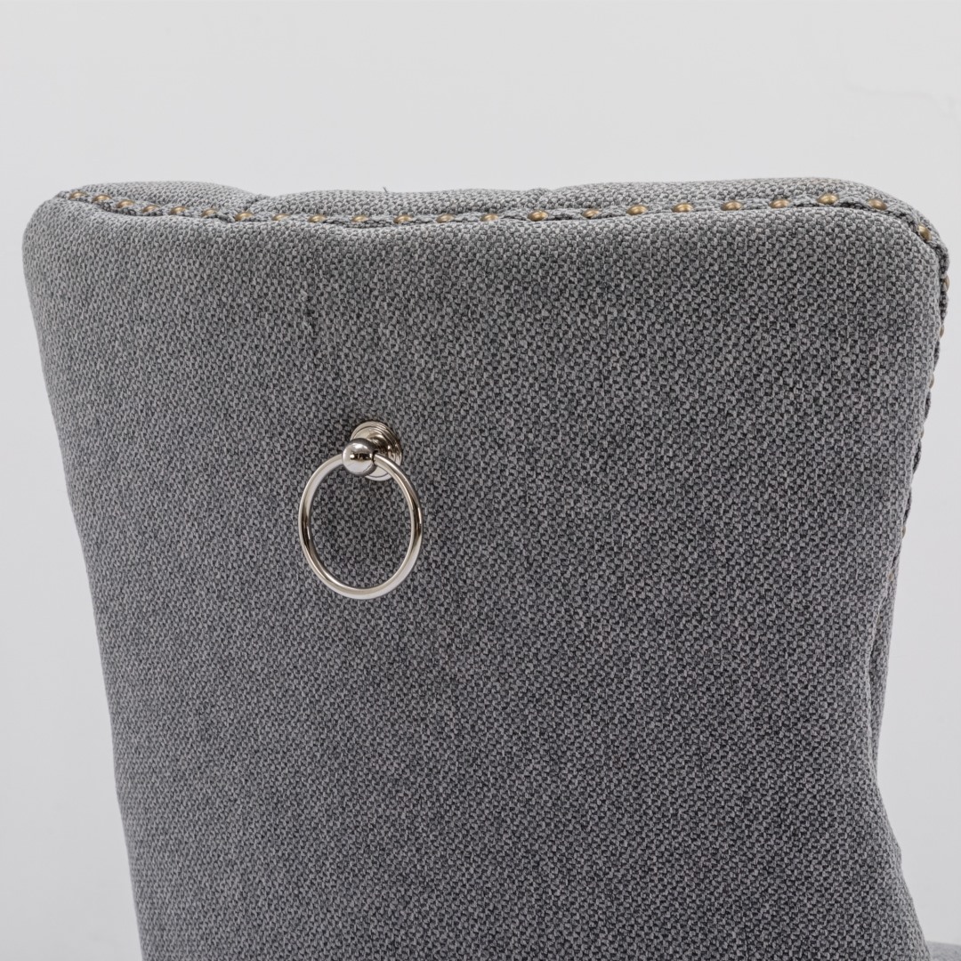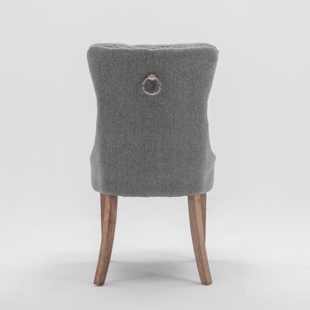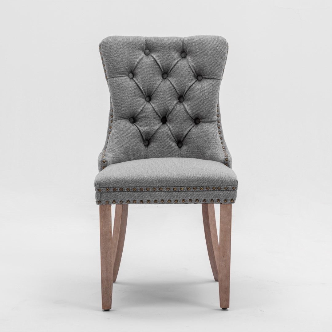 AADEN Modern Elegant Button-Tufted Upholstered Fabric with Studs Trim and Wooden legs Dining Side Chair-Gray