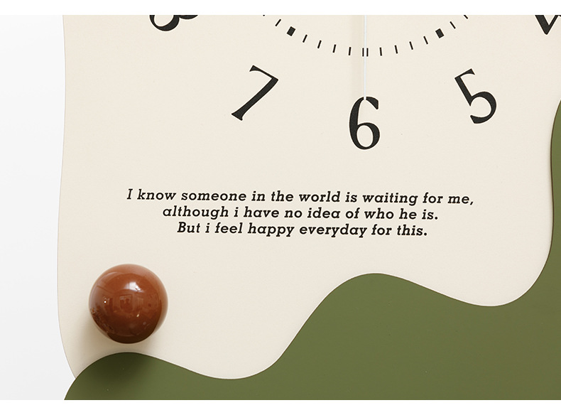 This modern wall clock combines artistic design with functional simplicity. Its unique wavy shape and decorative ceramic accent make it a stylish addition to any space. The clock features a silent movement for a peaceful environment and is easy to install, making it suitable for various rooms such as living rooms, bedrooms, and offices.