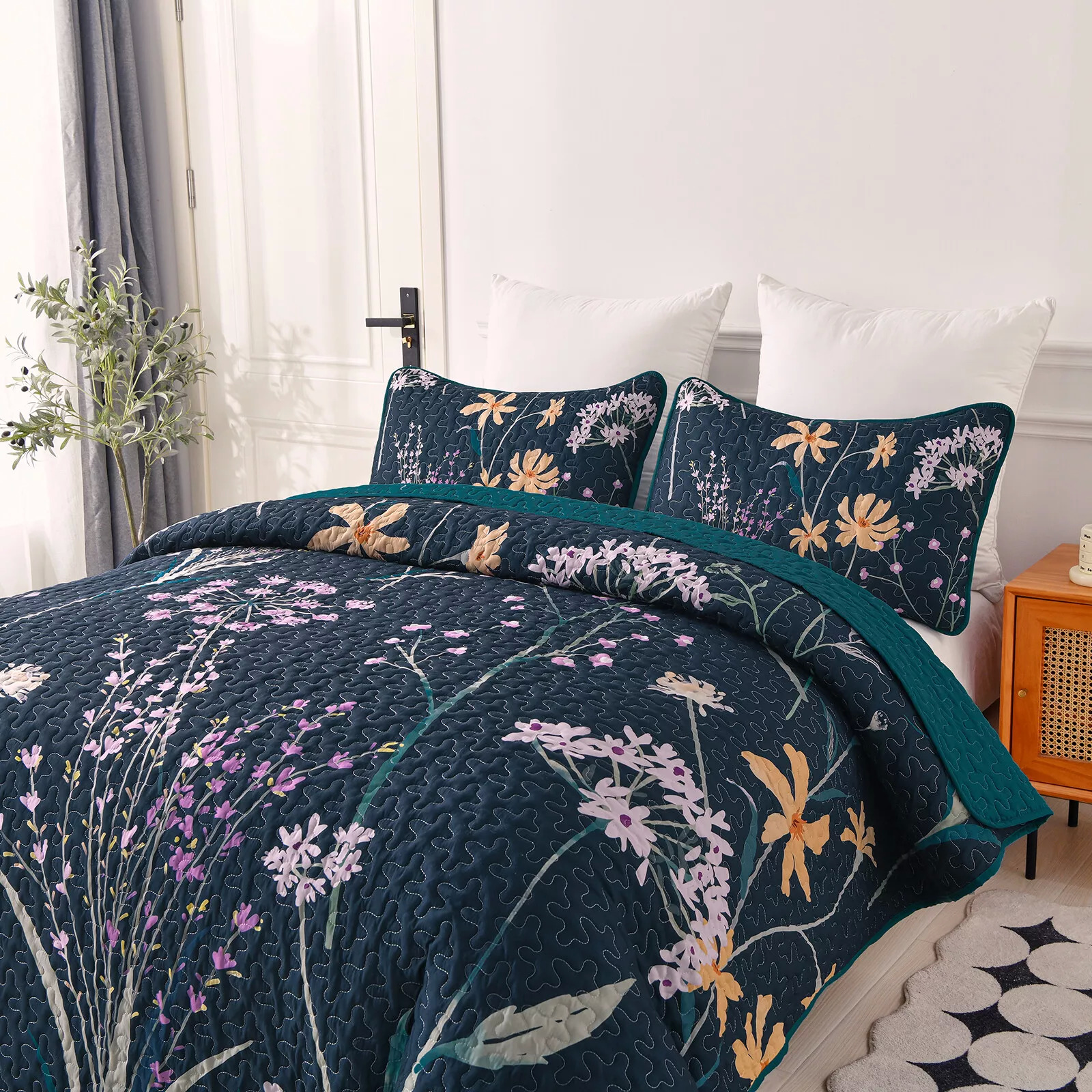 This quilted coverlet and pillowcover set offers a stylish and comfortable addition to your bedroom. Designed in a queen size, it enhances the aesthetic appeal of your sleeping space while providing a cozy and inviting atmosphere. The set features a lightweight, reversible quilt bedspread along with matching pillowcases, making it both functional and decorative.