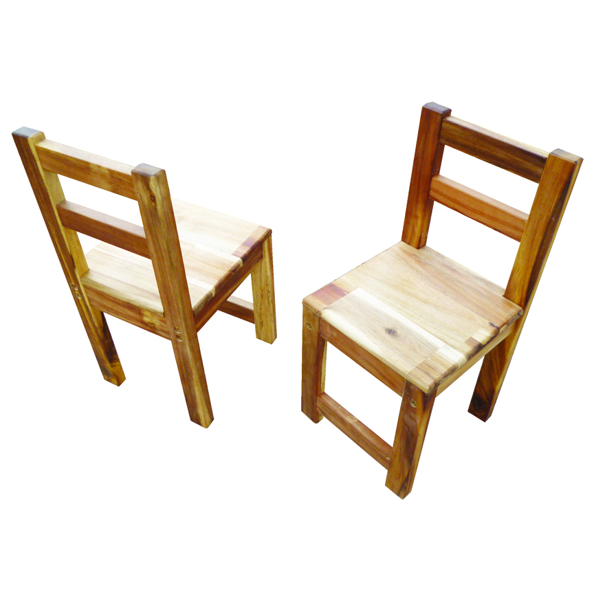 This chair is crafted from durable plantation acacia hardwood, featuring an oiled and stained finish. It is designed to be safe for children, using non-toxic materials throughout.