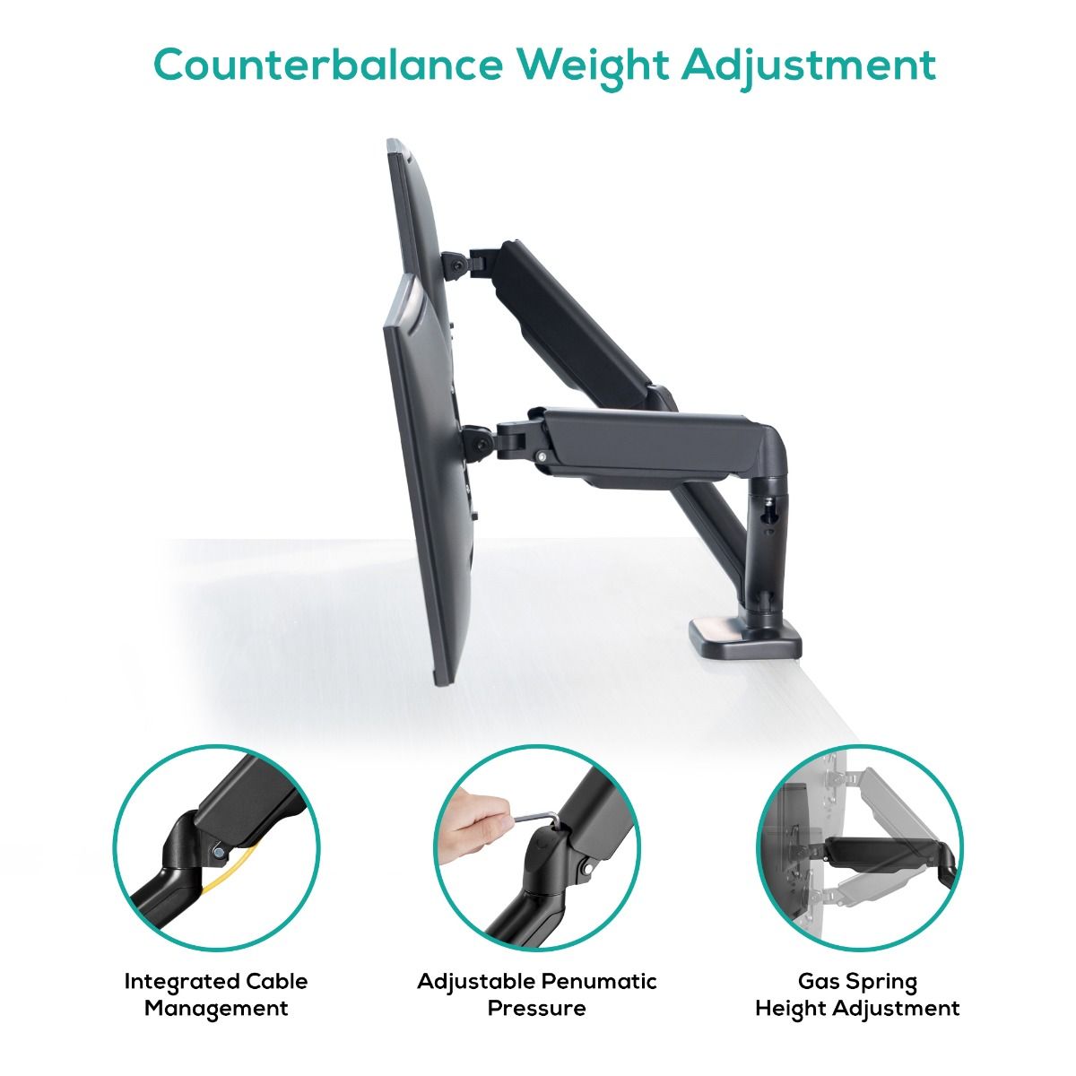 This dual monitor steel gas spring monitor arm offers a versatile and ergonomic solution for your workspace. It features easy installation options, smooth movement, and cable management to keep your desk tidy. Designed to support multiple monitor sizes, it enhances productivity and comfort.