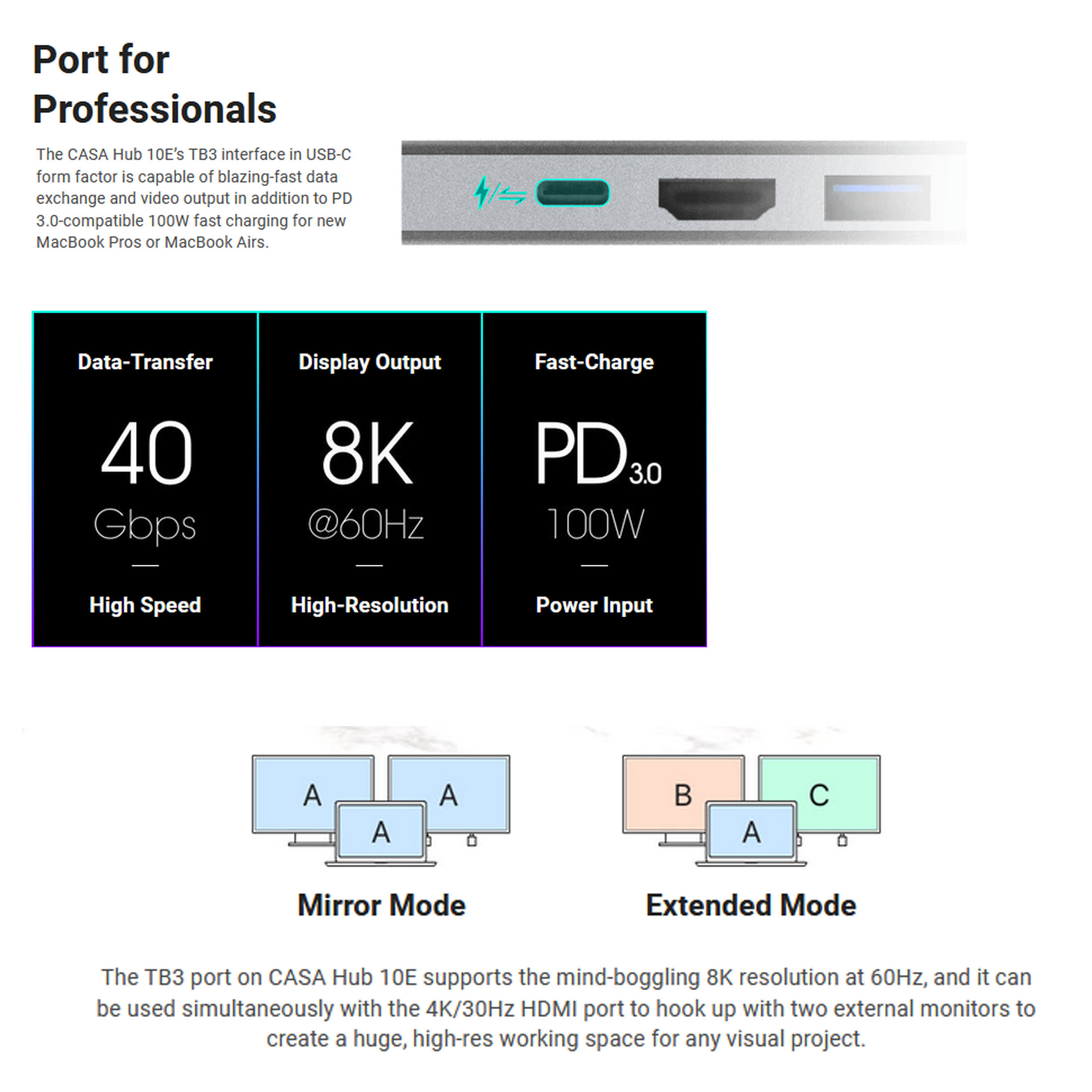 Adam Elements CASA HUB 10E SUPER DOCK USB-C TB3 8K HDMI Macbook Laptop