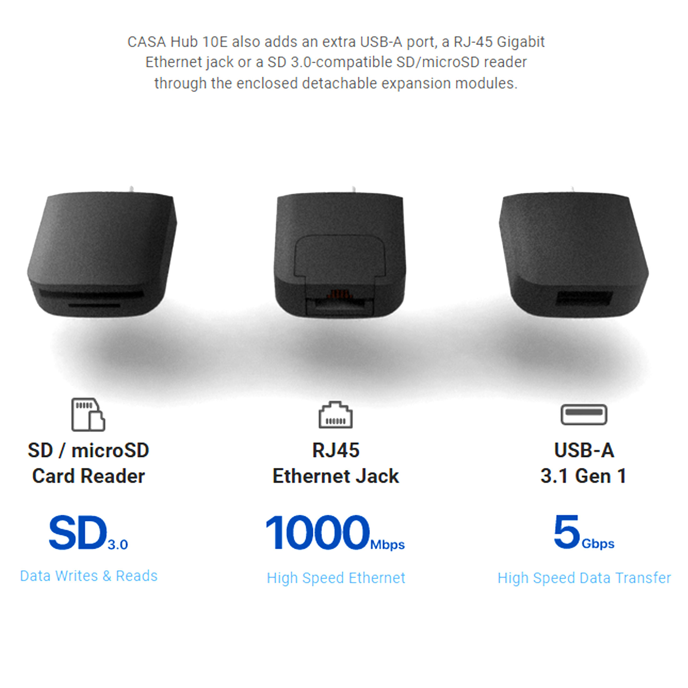 • Includes modules for Ethernet, SD/microSD card readers, and additional USB-C ports
