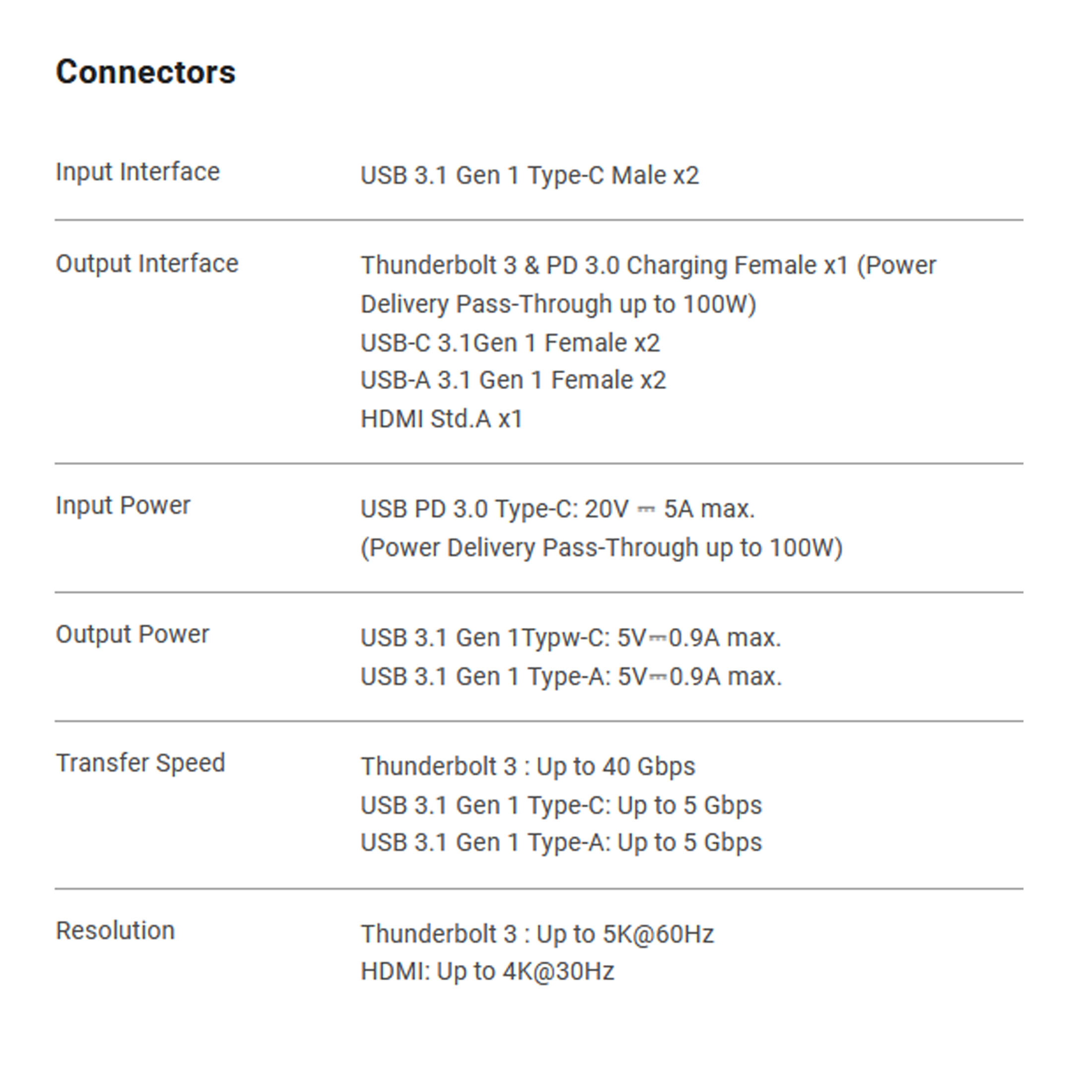 • Supports Thunderbolt 3 with high-speed data transfer, 8K video output, and 100W charging