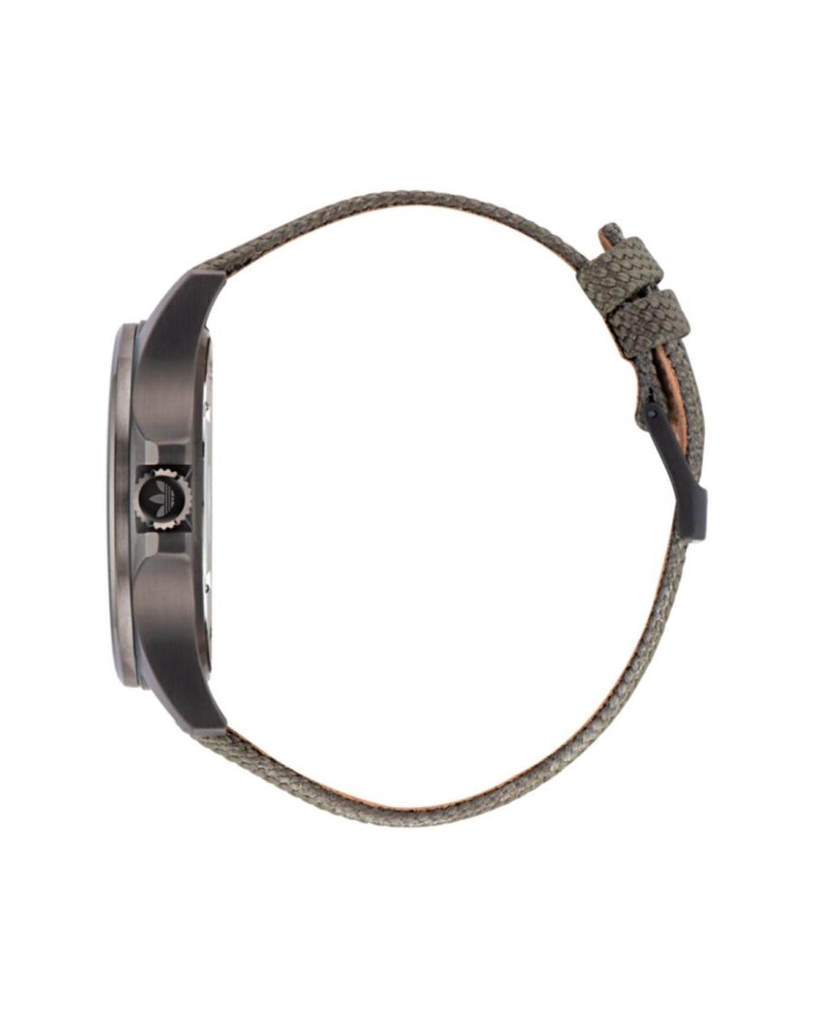 This unisex watch features a stylish green fabric strap and a matching green dial, combining a modern look with practical functionality. It is designed with a durable stainless steel case and mineral glass for added protection. The watch offers reliable timekeeping with a quartz movement and a water resistance of 5ATM, making it suitable for everyday wear.