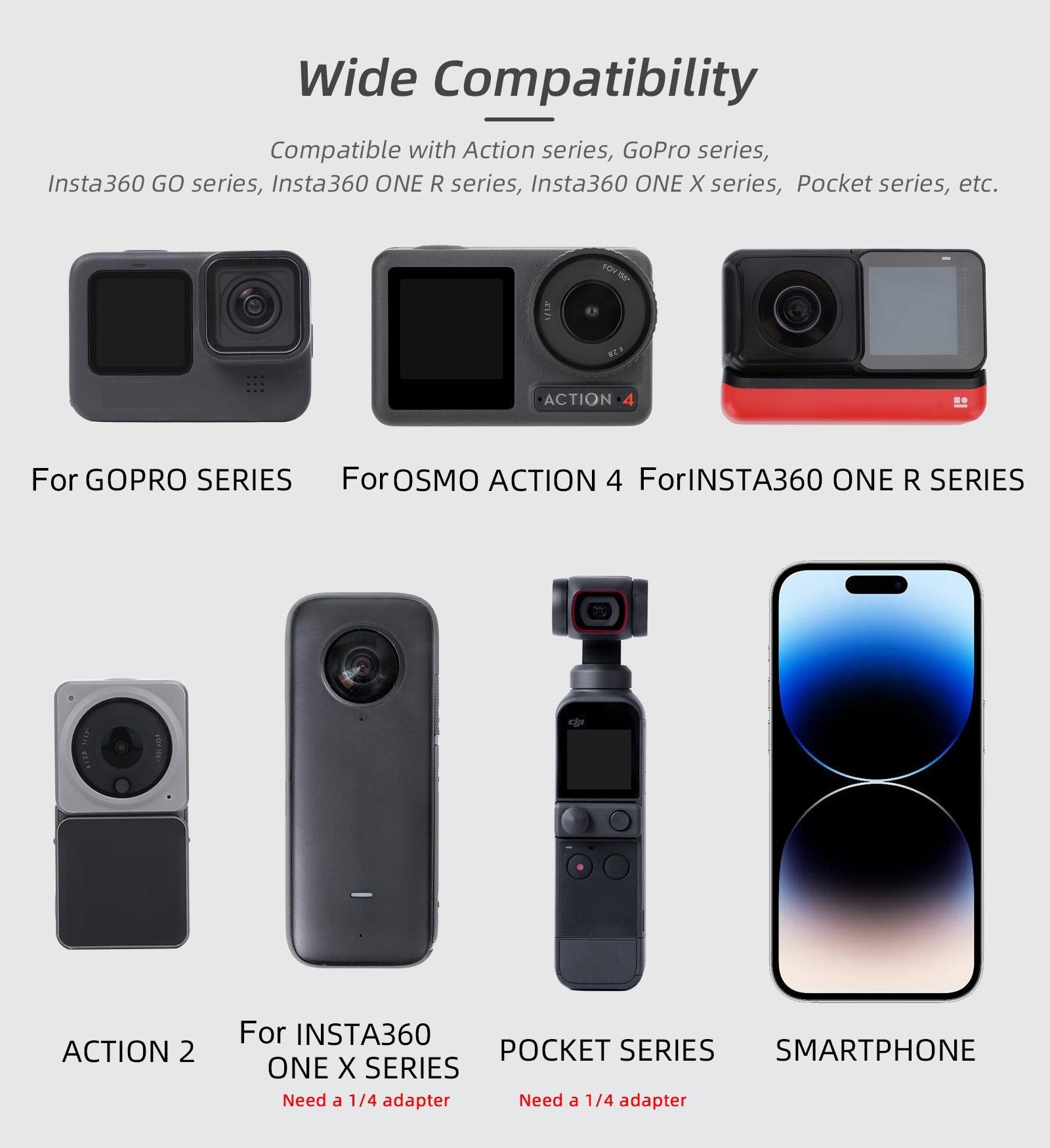 Package includes one adjustable head strap suitable for action cameras such as GoPro, Insta360, DJI Action, and others.