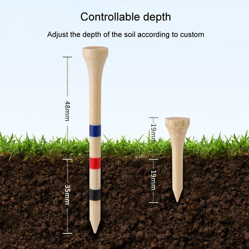 Adjustable Bamboo Golf Spikes – 30pcs / Box – Depth Marker Tee – 38Mm