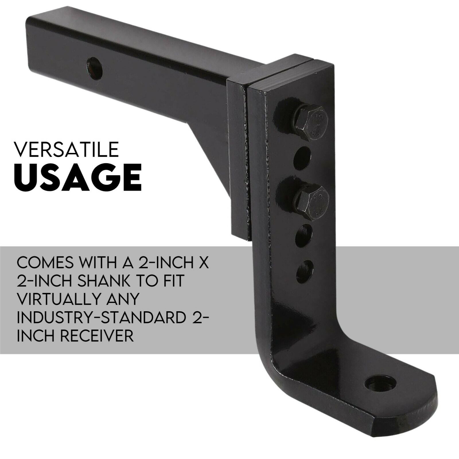 This adjustable drop towbar is a heavy-duty towing accessory designed to provide reliable and safe towing performance. It features an adjustable ball mount, a durable construction, and compatibility with various trailer sizes and weights, making it suitable for different towing needs.