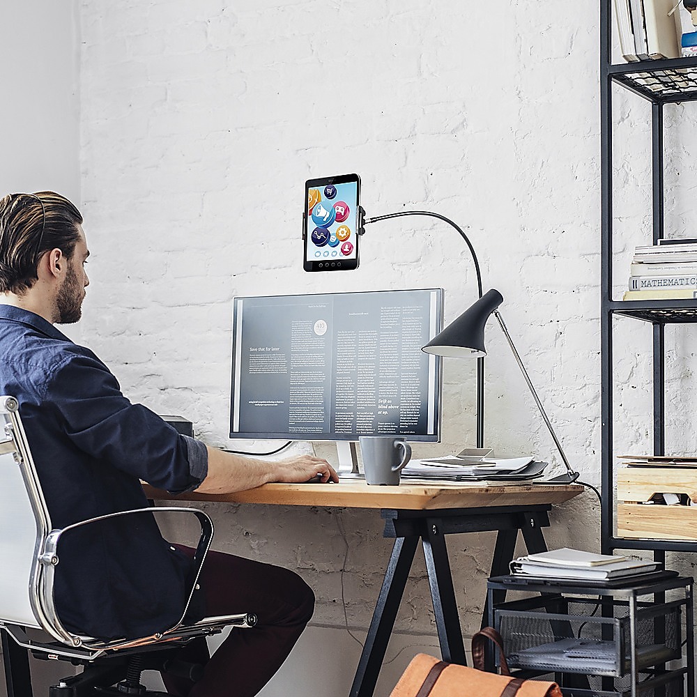 This adjustable floor stand is designed to hold tablets and phones ranging from 4 to 9.5 inches. It provides a versatile and convenient solution for hands-free viewing, recording, or video calls. The stand features adjustable height and angle settings, ensuring comfortable use in various scenarios. Its stable base ensures wobble-free operation, making it suitable for use at home, in the office, or during workouts.